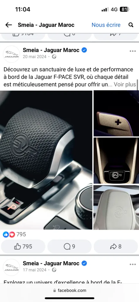 Dans le cadre d’un projet pour Jaguar Maroc, j’ai été chargé de produire des vidéos promotionnelles et des teasers destinés aux réseaux sociaux. L’objectif principal était de valoriser l’univers premium de la marque et d’améliorer l’impact visuel de ses campagnes digitales.